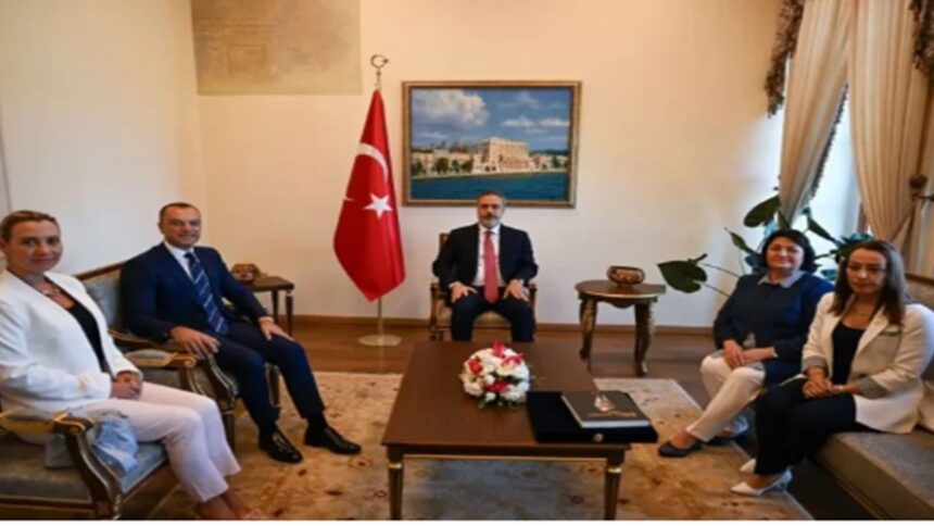 Photo:Ο υπουργός Εξωτερικών της Τουρκίας, Χακάν Φιντάν με την οικογένεια του Αχμέτ Σαδίκ, τον οποίο το τουρκικό υπουργείο Εξωτερικών παρουσιάζει ως τον ηγέτη των “Τούρκων της Δυτικής Θράκης”. Φωτογραφία T.C. Dışişleri Bakanlığı, @TC_Disisleri