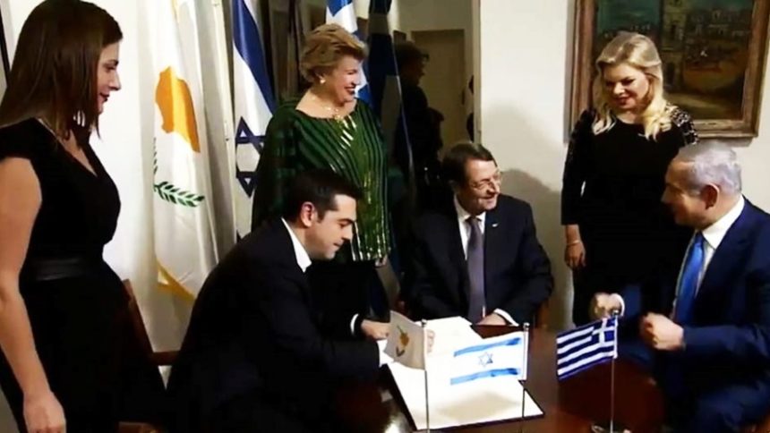 Αλέξης Τσίπρας, ενόψει της Τριμερής Συνόδου Κορυφής ανάμεσα σε Ισραήλ, Ελλάδα και Κύπρο. Το βράδυ της Τετάρτης, ο Ισραηλινός Πρωθυπουργός Μπεντζαμίν Νετανιάχου μαζί με την σύζυγό του, Σάρα, υποδέχθηκε τον Αλέξη Τσίπρα με την Μπέτυ Μπαζιάνα καθώς και τον πρόεδρο της Κύπρου, Νίκο Αναστασιάδη μαζί με την σύζυγό του, Άνδρη Μουστακούδη και δείπνησαν μαζί, στο σπίτι του κ. Νετανιάχου στην Ιερουσαλήμ.