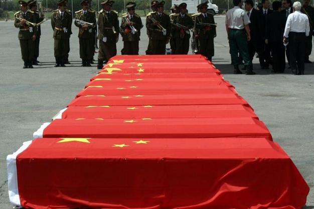 Φέρετρα που περιέχουν τις σορούς θανόντων Κινέζων εργαζομένων σε οδικά έργα, στην Καμπούλ, στο Αφγανιστάν, τον Ιούνιο του 2004. Reuters
