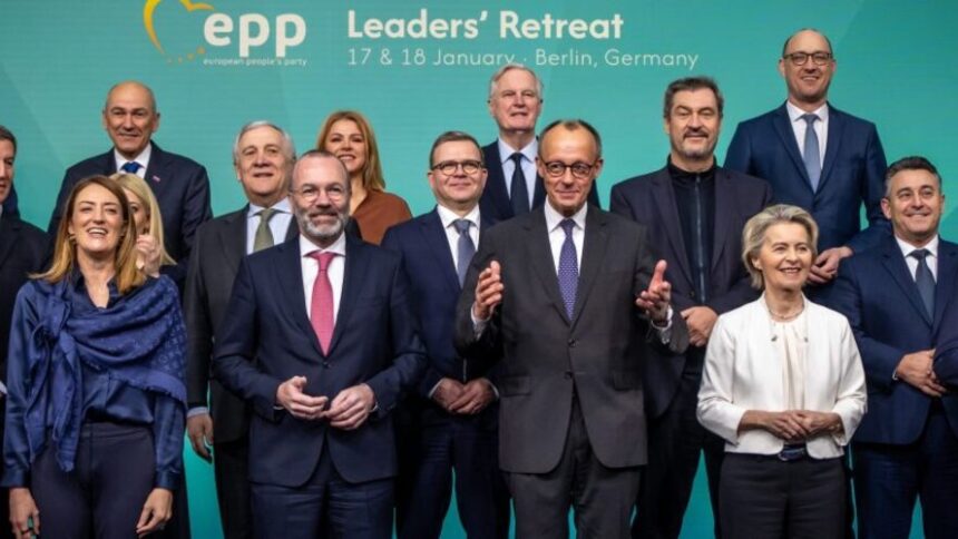 Οι ηγέτες του Ευρωπαϊκού Λαϊκού Κόμματος συγκεντρώθηκαν το Σάββατο στο Βερολίνο για να υποστηρίξουν τον άνθρωπο στον οποίο στοιχηματίζουν ότι θα γίνει ο επόμενος καγκελάριος της Γερμανίας και θα φέρει τη χώρα πίσω στη στέγη του ισχυρού κεντροδεξιού μπλοκ τους.