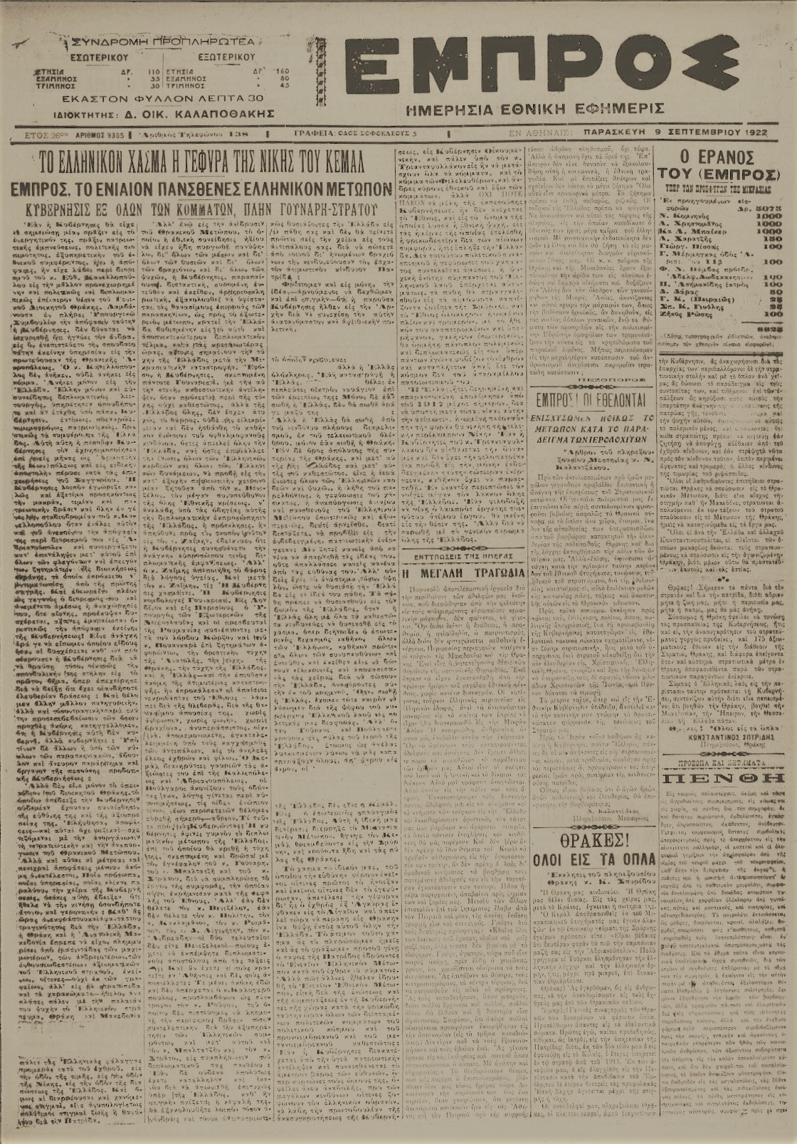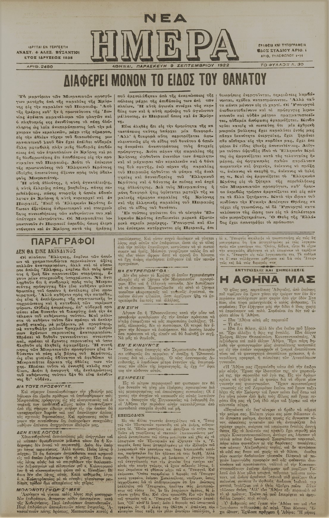 - Η ΕΝ ΣΜΥΡΝΗ ΚΑΤΑΣΤΡΟΦΗ – ΑΙ ΠΡΩΤΑΙ ΕΙΔΗΣΕΙΣ (Κατά τας αφηγήσεις ξένων δημοσιογράφων)