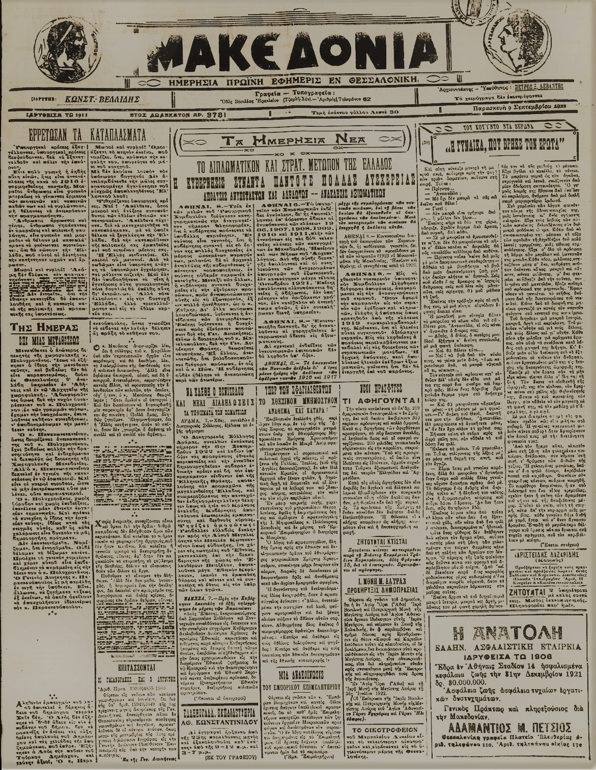 «Ο κ. Τριανταφυλλάκος ας μη ακολουθήση την πολιτικήν των προκατόχων του και ας αποφύγη τας ολεθρίας επιδράσεις των. Εάν εκείνοι κατεδίκασαν εις αχρηστίαν τον Ε. Βενιζέλον, ο κ. Τριανταφυλλάκος ας τον επαναφέρη τάχιστα εις την ενέργειαν, πρίν τον επαναφέρη ο Ελληνικός Λαός διά των εκλογών, αλλά κατόπιν εορτής πλέον, κατόπιν μιάς ———————– Βενιζέλος διά να σωθή η εναπολειφθείσα Ελλάς ή η Ελλάς θα καταστραφή»
