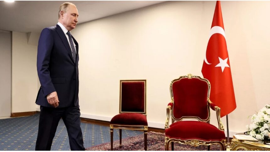 Σε άβολη θέση, να περιμένει όρθιος σε ένα δωμάτιο μπροστά στους δημοσιογράφους τον Ρετζέπ Ταγίπ Ερντογάν, βρέθηκε ο Βλαντίμιρ Πούτιν.