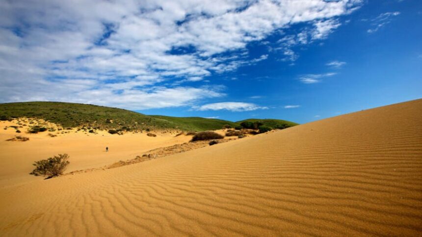 Όσο προχωράτε προς του αμμόλοφους και κατευθύνεστε προς τις Παχιές Αμμουδιές, τόσο πιο εντυπωσιακό γίνεται το φυσικό σκηνικό ολόγυρά σας, σε μια τοποθεσία που δεν φαίνεται καθόλου να δικαιολογεί την ύπαρξή τους.