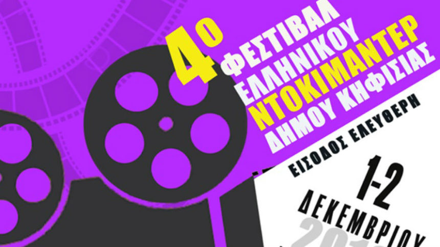 Το Ν.Π.Δ.Δ. Πολιτισμού & Αθλητισμού «Δημήτριος Βικέλας» Δήμου Κηφισιάς διοργανώνει για 4η χρονιά το Φεστιβάλ Ελληνικού Ντοκιμαντέρ Δήμου Κηφισιάς. Ένας ξεχωριστός θεσμός που θα πραγματοποιηθεί το Σάββατο 1 και την Κυριακή 2 Δεκεμβρίου 2018, στην Αίθουσα του Δημαρχείου Κηφισιάς «Δήμαρχος Βασ. Γκατσόπουλος» (Διονύσου & Μυρσίνης, Κηφισιά), με ώρα έναρξης προβολών 17:30.