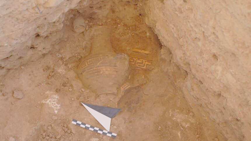 Σιδερένια αιχμή κάθετα τοποθετημένη, προσφορά στη λατρευόμενη θεότητα. 710-700 π.Χ.