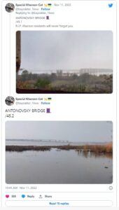 Αυτό ώθησε bloggers που παρακολουθούν στενά τον πόλεμο να πουν ότι η αποχώρηση της Ρωσίας από τη δυτική όχθη του ποταμού Δνείπερου έχει ολοκληρωθεί.