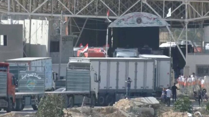 ΦΟΡΤΗΓΑ ΜΕ ΑΝΘΡΩΠΙΣΤΙΚΗ ΒΟΗΘΕΙΑ ΓΙΑ ΚΑΥΣΙΜΑ ΕΙΣΕΡΧΟΝΤΑΙ ΣΤΗ ΛΩΡΙΔΑ ΤΗΣ ΓΑΖΑΣ ΜΕΤΑ ΤΗΝ ΕΝΑΡΞΗ ΤΗΣ ΕΚΕΧΕΙΡΙΑΣ