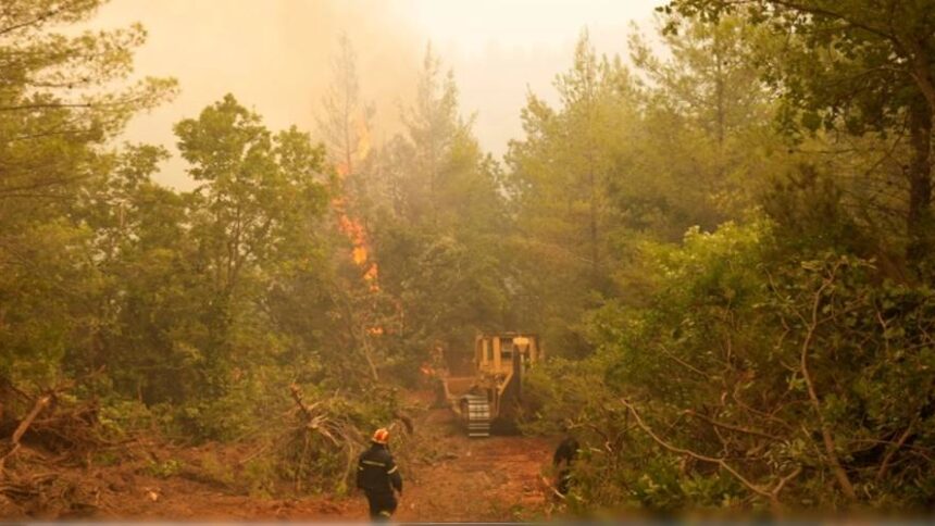 Όταν έσπασε το πύρινο μέτωπο στην Αβγαριά, πυροσβέστες, ξένες αποστολές, εθελοντές δημιούργησαν νέα αντιπυρική ζώνη στο χωριό Καμάρια.
