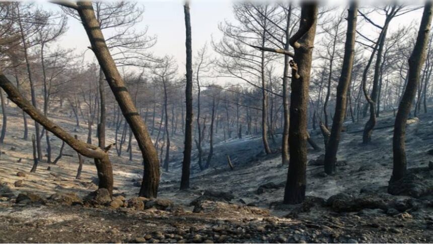 Αυτή την ώρα, με τις συνεχείς ρίψεις νερού από αεροπλάνα και ελικόπτερα το πύρινο μέτωπο έχει περιοριστεί μέσα σε μία χαράδρα.