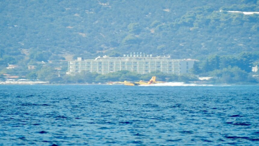 Εκτός των επίγειων δυνάμεων, την πορεία της φωτιάς που κινήθήκε προς τη Νέα Λάμψακο, λόγω του βοριά, προσπάθησαν να κόψουν, με ρίψεις νερού από αέρος και δύο ελικόπτερα. Στην περιοχή βρίσκονταν και ποιμνιοστάσια.