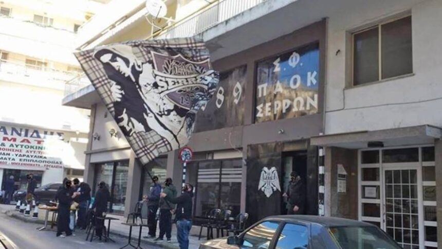Προτού ανοίξει ο κύκλος της αιματηρής βίας, τα θύματα χτύπησαν την πόρτα του συνδέσμου του ΠΑΟΚ. Για λίγα λεπτά επικράτησε σκηνικό λεκτικής φασαρίας.