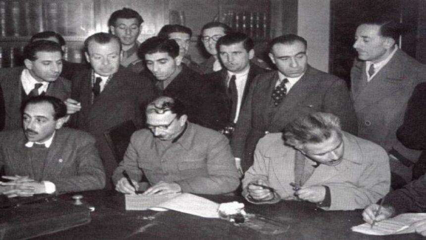 Υπογράφεται η Συμφωνία της Βάρκιζας, με την οποία οι εκπρόσωποι του ΕΑΜ δέχονται να διαλυθεί ο ΕΛΑΣ και οι μαχητές του να παραδώσουν τα όπλα τους στη νόμιμη κυβέρνηση του Νικολάου Πλαστήρα.