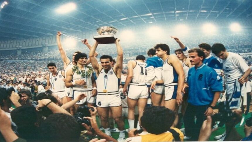Η Εθνική Ελλάδος κατακτά το χρυσό μετάλλιο στο Ευρωμπάσκετ της Αθήνας, νικώντας στον τελικό τη Σοβιετική Ένωση με 103-101.