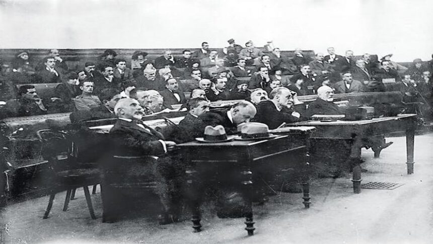 Το έκτακτο στρατοδικείο που δικάζει τους πρωταιτίους της μικρασιατικής καταστροφής, εκδίδει την ετυμηγορία του στις 6:30 το πρωί. Στις 11:30 π.μ. οι «6» εκτελούνται. Πρόκειται για τους Δημήτριο Γούναρη (59 ετών, πρώην πρωθυπουργός), Πέτρο Πρωτοπαπαδάκη (68 ετών, πρώην πρωθυπουργός), Νικόλαο Στράτο (50 ετών, πρώην πρωθυπουργός), Νικόλαο Θεοτόκη (44 ετών, υπουργός Στρατιωτικών στην κυβέρνηση Πρωτοπαπαδάκη), Γεώργιο Μπαλτατζή (56 ετών, υπουργός Εξωτερικών στις κυβερνήσεις Γούναρη και Πρωτοπαπαδάκη) και Γεώργιο Χατζανέστη (59 ετών, Αρχιστράτηγος Μικράς Ασίας και Θράκης).