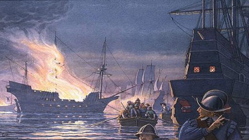 Ο βρετανός ναύαρχος και πρώην πειρατής σερ Φράνσις Ντρέικ βυθίζει την ισπανική αρμάδα στο λιμάνι του Κάδιξ, δίνοντας τέλος στη θαλασσοκρατορία των Ισπανών και εγκαινιάζοντας την εποχή της βρετανικής κυριαρχίας στις θάλασσες.