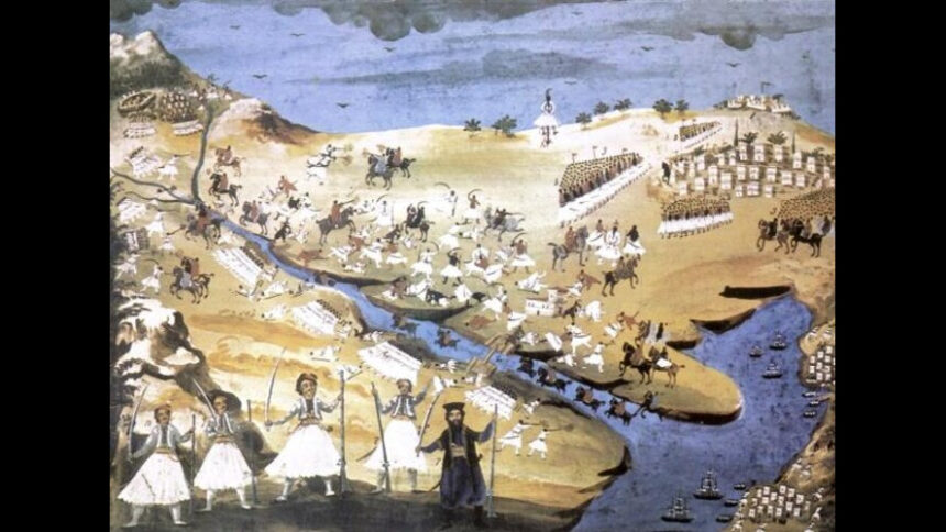 Η Μάχη της Αλαμάνας. Οι ελληνικές επαναστατικές δυνάμεις υπό τους Δυοβουνιώτη, Πανουργιά και Διάκο αντιμετωπίζουν στη γέφυρα της Αλαμάνας (περιοχή Θερμοπυλών) τις υπέρτερες οθωμανικές ορδές του Ομέρ Βρυώνη και του Κιοσέ Μεχμέτ και ηττώνται.
