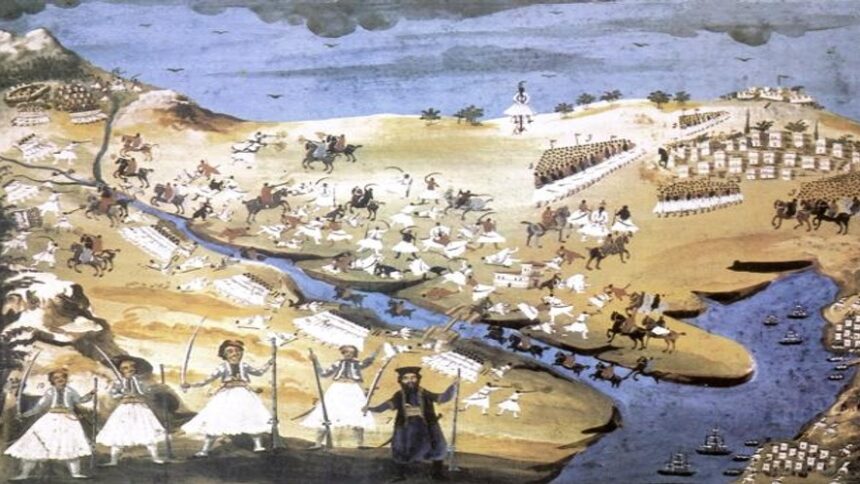Η Μάχη της Αλαμάνας. Οι ελληνικές επαναστατικές δυνάμεις υπό τους Δυοβουνιώτη, Πανουργιά και Διάκο αντιμετωπίζουν στη γέφυρα της Αλαμάνας (περιοχή Θερμοπυλών) τις υπέρτερες οθωμανικές ορδές του Ομέρ Βρυώνη και του Κιοσέ Μεχμέτ και ηττώνται.