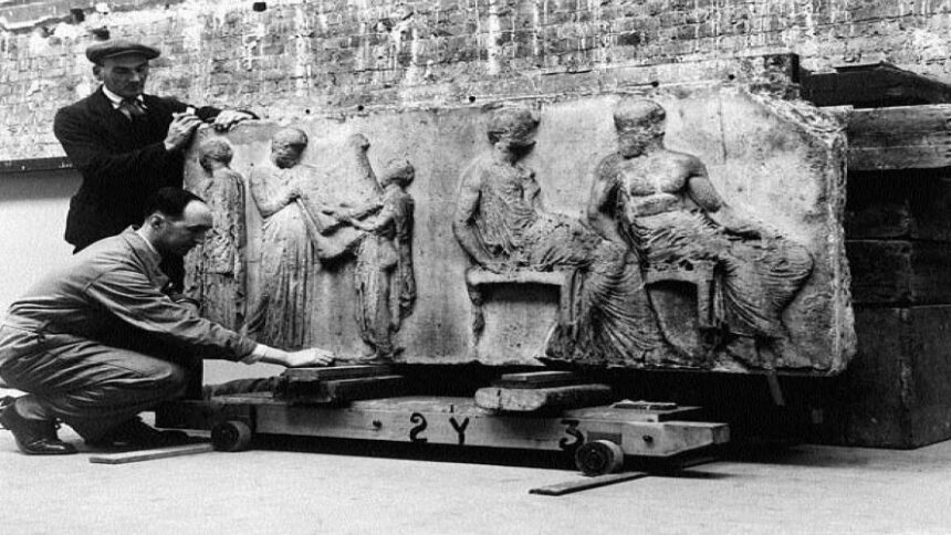 Ο λόρδος Έλγιν μεταφέρει την πρώτη μετόπη από τα Μάρμαρα του Παρθενώνα στο Λονδίνο.