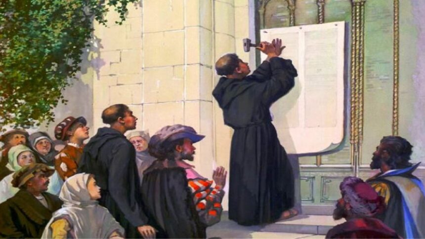 Ο γερμανός θεολόγος Μαρτίνος Λούθηρος τοιχοκολλεί τις 95 θέσεις του στην εκκλησία του Βίτενμπεργκ και ακολουθεί το σχίσμα στην καθολική εκκλησία.