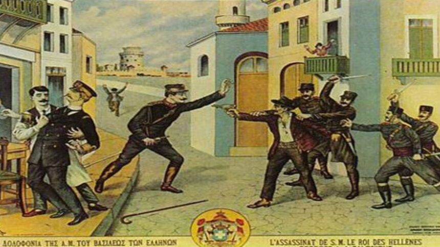 Ο βασιλιάς των Ελλήνων Γεώργιος Α’ πέφτει νεκρός στη Θεσσαλονίκη από τις σφαίρες του Αλέξανδρου Σχινά, στην 50η επέτειο από της αναρρήσεώς του στο θρόνο. «Κακούργοι χείρες παραφρόνων εδολοφόνησαν εν Θεσσαλονίκη τον Βασιλέα, βυθίσασαι εις βαθύτατον πένθος το έθνος, εν ημέρες αγαλλιάσεως δια την πλήρωσιν πανελληνίων πόθων» ανακοινώνει ο κυβερνητικός εκπρόσωπος.