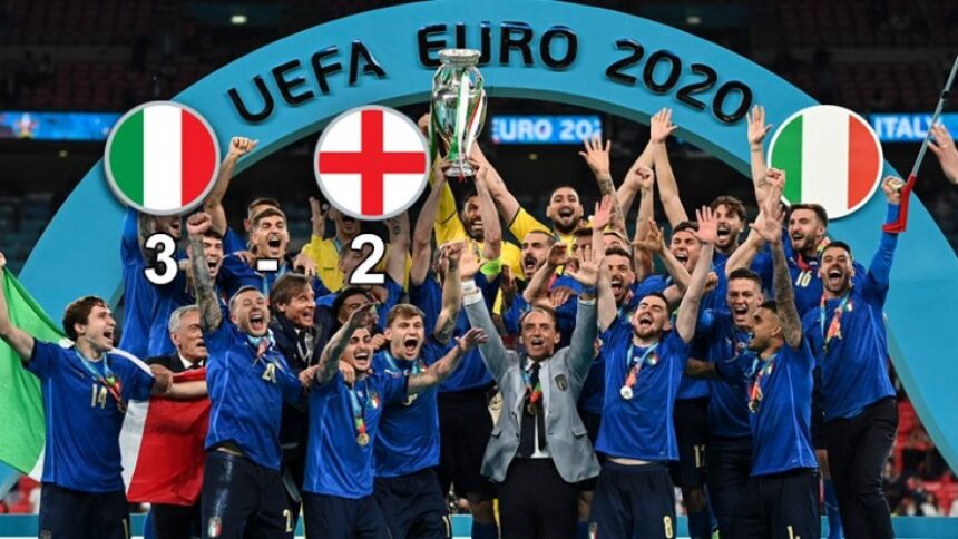 Οι «ατζούρι» επικράτησαν με 3-2 της Αγγλίας στα πέναλτι (1-1 η κανονική διάρκεια και η παράταση) στον τελικό του Euro 2020, που διεξήχθη στο Γουέμπλεϊ και στέφθηκαν πρωταθλητές Ευρώπης για δεύτερη φορά στην ιστορία τους, μετά το μακρινό 1968, όταν και είχαν πανηγυρίσει εντός των τειχών τον μοναδικό μέχρι σήμερα τίτλο τους.