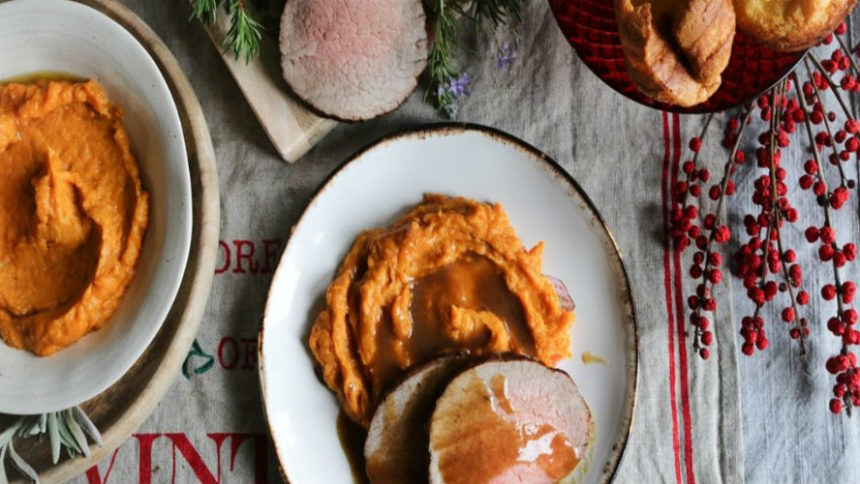 Τα Χριστούγεννα, γενικά οι γιορτές και ειδικότερα τα γιορτινά τραπέζια με τους αγαπημένους μου τα λατρεύω και ξέρω καλά πια, πως όλοι περιμένουν να έρθουν να γιορτάσουμε και ν΄απολαύσουμε το roast beef με σάλτσα ψητού, όπου φέτος θα σερβίρω με πουρέ από γλυκοπατάτες.