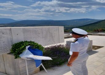 Το μνημείο στο Δίστομο, εκεί όπου το 1944 οι Γερμανοί κατακτητές σφαγίασαν 229 άμαχους Έλληνες επισκέφθηκε στην πρώτη του έξοδο από το στρατόπεδο στη Θήβα σήμερα Κυριακή 24/3 ο Στέφανος Κασσελάκης.