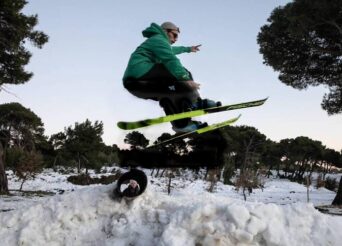 Σε… πίστα χιονοδρομικου μετέτρεψαν ενα μικρό δασάκι πίσω από την εκκλησία του Αγίου Σεραφείμ στην Πεντέλη λάτρεις του snowboard.