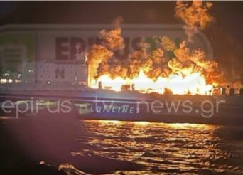 Πλάνα από το φλεγόμενο πλοίο, ακούγεται το Mayday – Ενας τραυματίας – Από το γκαράζ ξεκίνησε η φωτιά, επιβάτης είπε ότι φοβάται ότι οδηγοί φορτηγών κοιμόντουσαν στα οχήματά τους – Συνολικά πάνω στο πλοίο ήταν 237 επιβάτες και 51 άτομα πλήρωμα Ολοσχερώς καίγεται το επιβατηγό-οχηματαγωγό πλοίο Euroferry Olympia του ομίλου Grimaldi, αλλά οι 237 επιβάτες και τα 51 άτομα πλήρωμα κατάφεραν να το […]