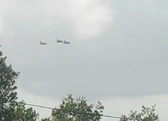 Μαχητικά αεροσκάφη της Πολεμικής Αεροπορίας πραγματοποιούν διελεύσεις πάνω από την αεροπορική βάση της Δεκέλειας στο Τατόι, σήμερα στο πλαίσιο της τελετής παράδοσης – παραλαβής καθηκόντων αρχηγού ΓΕΑ από τον αντιπτέραρχο Γ. Μπλιούμη στον αντιπτέραρχο Θεμιστοκλή Μπουρολιά.