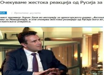 «Ζάεφ: Περιμένω έντονη αντίδραση της Ρωσίας για ΝΑΤΟ, αλλά είμαι έτοιμος για τα πάντα» «Περιμένω μια έντονη αντίδραση από τη Ρωσία, αλλά για την ένταξή μας στο ΝΑΤΟ είμαι έτοιμος για τα πάντα», είπε μεταξύ άλλων ο πρωθυπουργός των Σκοπίων, Ζόραν Ζάεφ, σε συνέντευξή του, ζωντανά, στην τηλεόραση «Antena-M» του Μαυροβουνίου. Η Ρωσία είναι […]