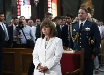 «Ο λαός μας πάντοτε αντλούσε παρηγοριά και δύναμη από την προστατευτική παρουσία της Παναγίας», επισήμανε η πρόεδρος της Δημοκρατίας, Κατερίνα Σακελλαροπούλου, η οποία ευχήθηκε “Χρόνια Πολλά” από τον ακριτικό Έβρο, καθώς παρέστη στην Αρχιερατική Θεία Λειτουργία, για την Κοίμηση της Θεοτόκου, που έγινε στο Μητροπολιτικό Ναό Αλεξανδρούπολης, στην οποία χοροστάτησε ο μητροπολίτης Ανθιμος.