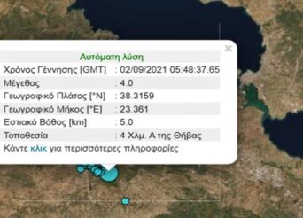 ΣΕΙΣΜOΣ ΤΩΡΑ – 4 ΡΙΧΤΕΡ ΚΟΝΤΑ ΣΤΗ ΘΗΒΑ